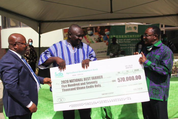 The Agricultural Development Bank (ADB) has presented a cheque of ¢570,000 to Solomon Kwadwo Kusi, the 2020 National Best Farmer.