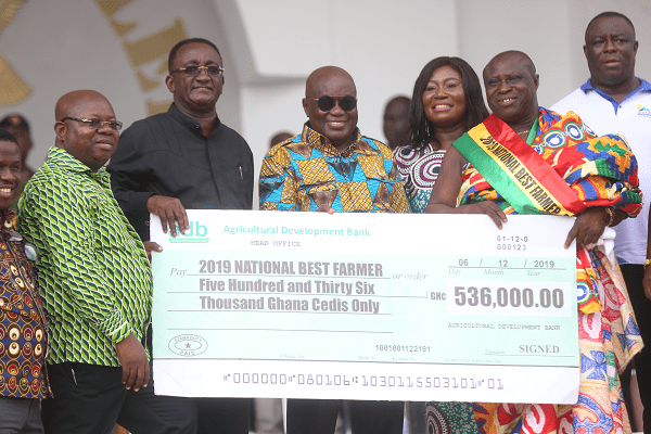 The 58-year-old farmer, who ended his education at the secondary level and took to farming 25 years ago and won the prestigious annual award at a colourful durbar held at the Volta Regional capital, Ho and took home a cheque for GH¢536,000 donated by the Agricultural Development Bank (ADB).